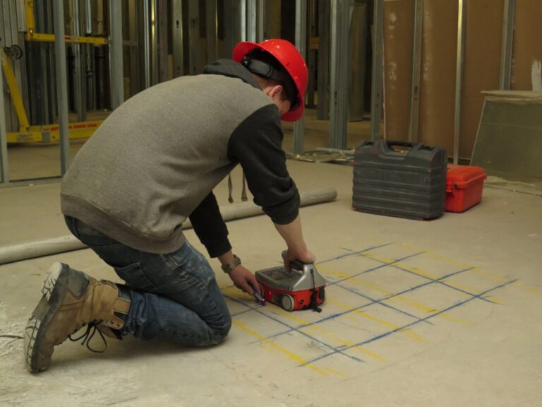 We monitor the lifting process with lasers to guarantee precision results and, when needed, use Ground-Penetrating Radar (GPR) to locate embeds before drilling. Most aisles return to service the same shift, which improves safety and throughput while avoiding full slab replacement.